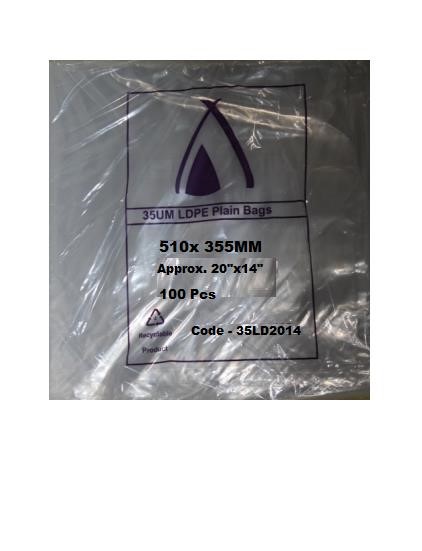 Poly Bag 20x14" 510x355mm 35UM 100 Pack