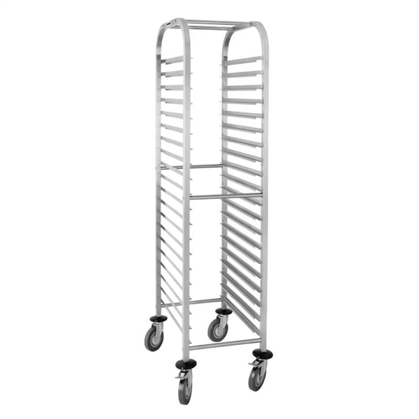 It features 20 evenly spaced rack slots for 1/1 GN pans, allowing for efficient stacking and transport of trays