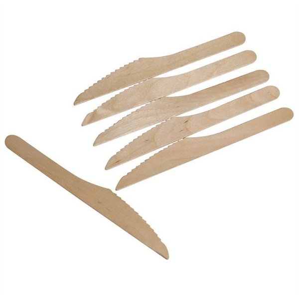Brown Wooden Knives offesr an eye catching, economical alternative to traditional disposable cutlery at your take out restaurant, hotel, cafe, coffee shop, winery, office break room, or catered events with this environmentally friendly, renewable wooden knife! The heavy weight wood dinner knife is a great alternative to green, biodegradable plastic cutlery because it won't break down, or turn to mush, if stored in high heat areas