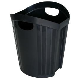 The deep black finish adds a sophisticated touch, while the integrated handles make it easy to lift and empty