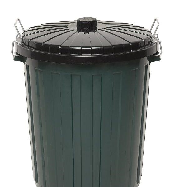 The green body is paired with a secure-fitting lid and easy-lock metal handles, keeping contents contained and odours under control