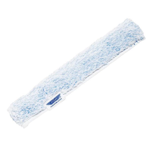 Abrasive bristles embedded in the fabric loosen stubborn marks without scratching glass