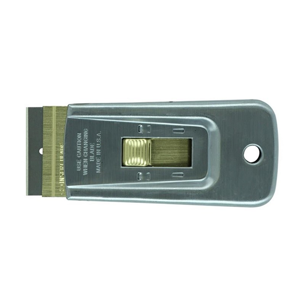 Sheffield 80-200 Retractable Metal Razor Scraper with brass button locking mechanism