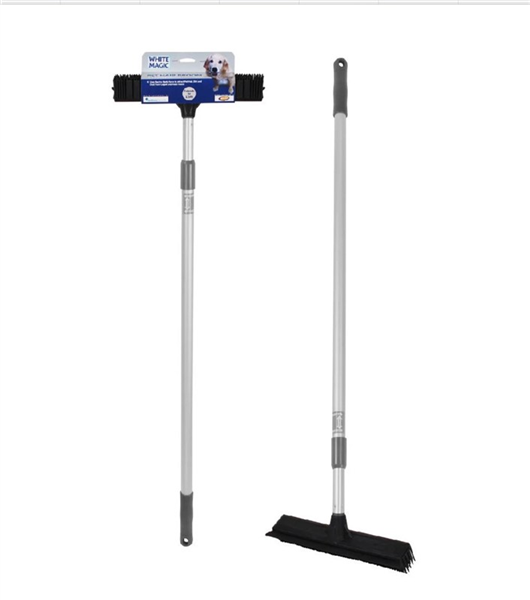 • Multi-surface broom works dry or wet—ideal for pet hair, dust, and even spills