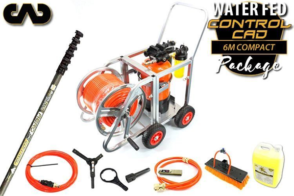Basic Residential & Commercial pure-water package with DI system, 6 m Aero Control CAD hybrid carbon pole, 8" brush, hose & reel