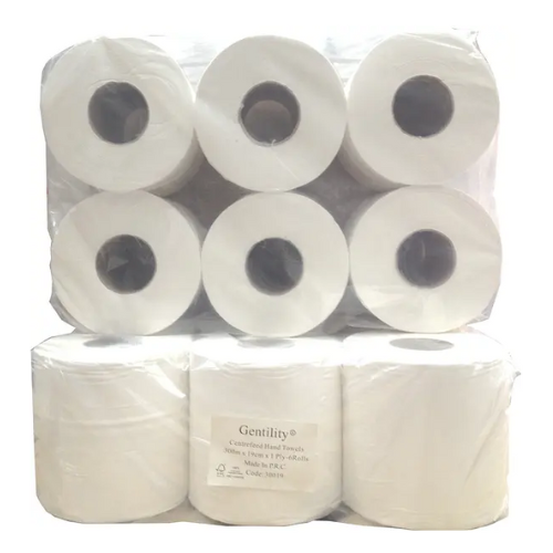 . High-capacity 300m rolls reduce maintenance and refills. Strong and absorbent 1 Ply construction. Centrefeed design for quick, hygienic dispensing. Cost-effective choice for busy environments