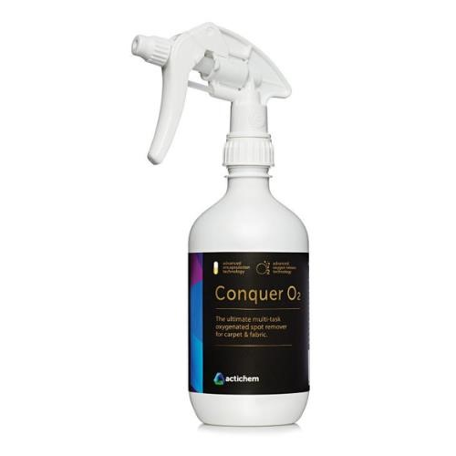 Conquer O2 is a stain remover for carpets and upholstery that kills germs and removes stains in one go, Conquer O2 has been designed to build on the outstanding ability of free oxygen to remove the toughest of stains from fibres & fabrics, provide powerful sanitisation and eliminate mal-odours. Conquer O2 has teamed up the awesome oxidising power of oxygen with wetting agents and encapsulating polymers to deliver a carpet and fabric stain remover which will remove those impossible stains which other spotters leave behind, Thanks to the latest in polymer and surfactant technology, Conquer O2 delivers reliable, dependable results every time. Size: 500ml