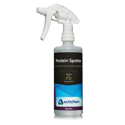 Protein Spotter is a protein and blood spotter for removing a wide variety of organic stains such as food, gravy, beverages and blood from carpets