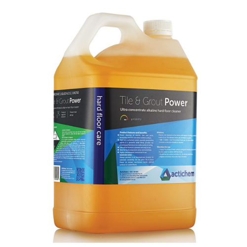 Tile & Grout Power is the superhero of hard floor cleaning! Removing grease, oils and general grime is what Tile & Grout Power does exceptionally well. Tile & Grout Power is also super versatile, which is why cleaning specialists love using it to clean tiles, natural stone and concrete that requires that extra hard hit to get a good result. Not only is Tile & Grout Power especially good at removing grease and oily grime from hard floors, but you will also find that it will quickly and easily remove carbon build-up from almost any hard surface. Ideally suited for use on all resilient flooring including concrete floors, ceramic tiles, terracotta and grout lines. Excellent in applications such as industrial kitchens, refuse compactor areas, workshop floors, food processing facilities, bakeries and public eating areas. Do not use or allow T&G Power to contact painted surfaces, non-ferrous metal surfaces (especially aluminium) and polymer coated flooring. Safe on all man-made tiles, natural stone products, grout and concrete at recommended dilutions. Size: 5L