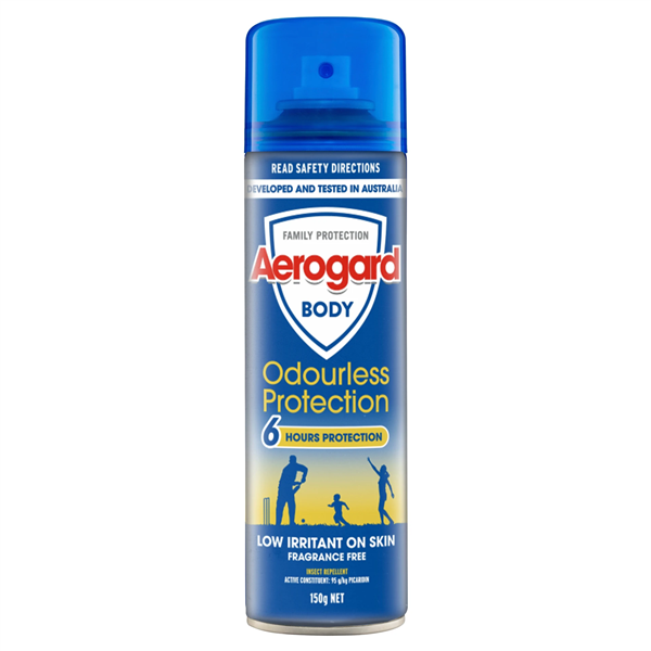 • Aerogard Odourless Protection 150g is a personal insect repellent aerosol that provides effective protection against mosquitoes, flies and other biting insects.