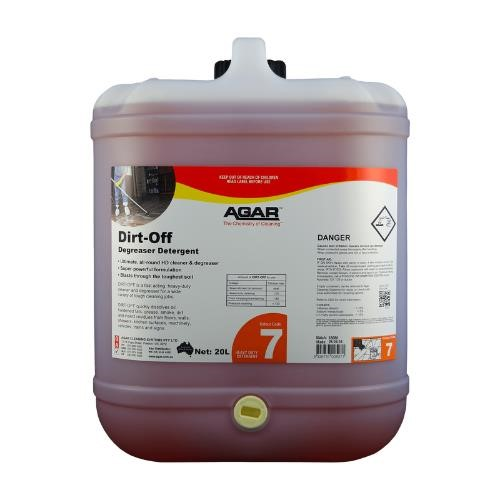 PRODUCT DESCRIPTION. Ultimate heavy-duty detergent/degreaser for use on a huge variety of surfaces. Amazingly versatile, DIRT-OFF is a pleasantly perfumed degreaser for use with mops, autoscrubbers, steam cleaners and pressure washers. Ideal for cleaning floors, walls, pavements, equipment, paintwork, machinery, BBQs, vehicles, trains and signs. Extremely versatile – cleans almost anything!