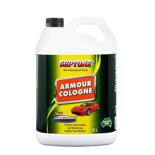 Septone Armour Cologne Rejuvenator is a water-based surface rejuvenator formulated to clean, restore and protect interior and exterior vinyl, leather, rubber, plastics and acrylic surfaces.