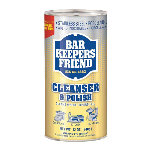 • The Bar Keepers Friend Cleanser & Polish is the trusted original formula that’s been cleaning and restoring surfaces since 1882 • This multi-purpose powder cleanser is renowned for tackling rust, mineral deposits, baked-on food, hard water stains, and tarnish—all without harsh chemicals or bleach • Ideal for use in the kitchen, bathroom, and even outdoors, it delivers powerful cleaning performance while being gentle on surfaces