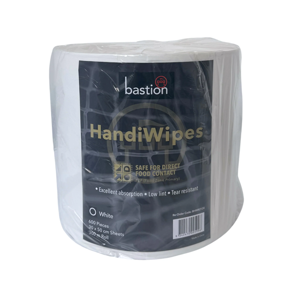 The Bastion Handiwipe Roll (300m, 600 Wipes, White) is a high-performance, heavy-duty cleaning wipe designed for commercial, industrial, and food-service environments.
