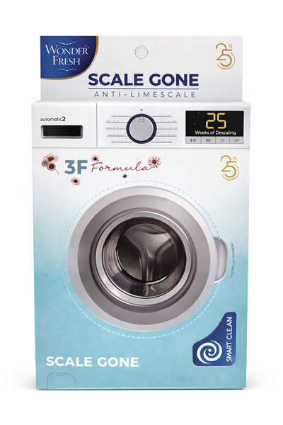 ChemSolve Scale Gone 100g sachet is a washing machine cleaning powder designed to dissolve hard water scale, mineral buildup, and limescale from both front and top-load machines, improving performance, efficiency, and appliance lifespan by cleaning the internal drum and tub. It's a simple-to-use, white powder that's added to the detergent dispenser for an empty wash cycle, acting as a deep cleaner and descaler to remove residue and reduce power usage.
