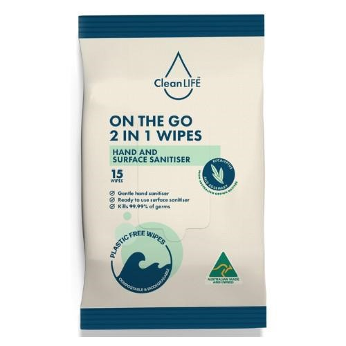 Clean Life On The Go 2 in 1 Wipes 15/PK