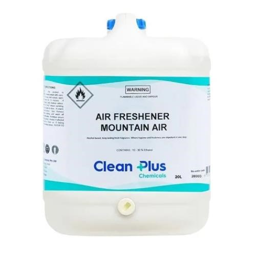 Alcohol-based air freshener concentrate in a 20L size, with a crisp “Mountain Air” fragrance designed for large-scale odour control.