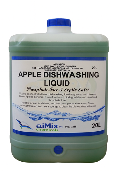 Cleaners Supermarket Dishwashing Liquid Green Apple 20L is a concentrated manual dishwashing detergent fragranced with a fresh green apple scent.