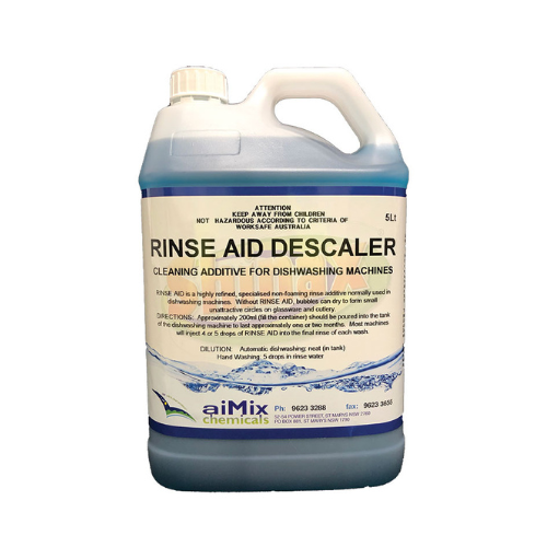 Cleaners Supermarket Rinse Aid Descaler 5L is a high-efficiency dual-action formula that ensures your dishware dries quickly, stays spotless, and your equipment remains free of scale buildup.