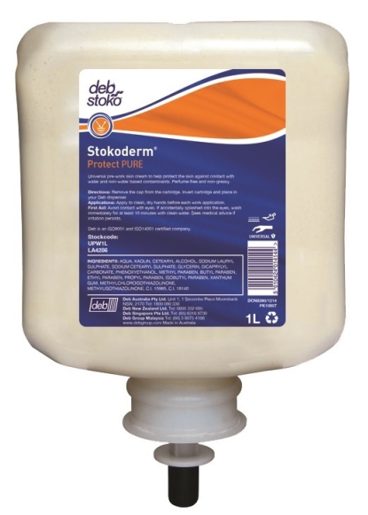 Deb Stokoderm Protect Pure 1L is a high-performance, perfume-free skin protection cream designed to provide effective protection for light to moderate exposure to water-based and non-water-based contaminants, including oils, grease, lubricants, and powders