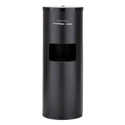 CleanLIFE Standing Wipes Dispenser in black is a durable, freestanding unit designed for convenient access to hand and surface sanitising wipes in high-traffic environments.
