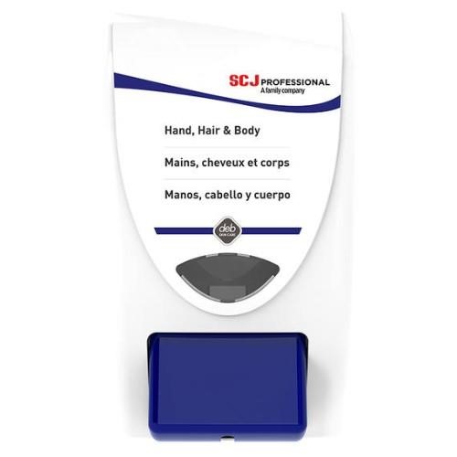 is a practical and hygienic shower dispenser designed for use with Deb Estesol 2L Hair & Body Wash refills