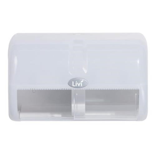 PRODUCT DESCRIPTION. Dispenser Livi Toilet Roll Horizontal Double is a durable and practical washroom solution designed to hold two rolls at once, reducing the frequency of replacements and ensuring a continuous supply of toilet paper. Its lightweight, impact-resistant moulding provides long-lasting use, while the lockable design with a universal key prevents tampering and pilferage. The push-to-open access allows for quick and easy refills, and the one-roll-at-a-time dispensing system helps reduce waste. With compact dimensions of 180mm(H) x 200mm(D) x 310mm(W), this dispenser fits neatly into any washroom. Finished in a clean white colour, it blends seamlessly into modern washroom spaces and is compatible with a wide range of toilet rolls including Livi 1001, Livi 1002, Livi 3005, Livi 3007, Livi 7004, Livi 7007, Livi 7008, Rapid Clean 77560, Rapid Clean 77525, and standard rolls