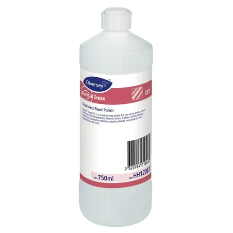 Diversey Suma Inox D7 is a ready-to-use cleaner and polish designed for stainless steel surfaces in commercial kitchens and food service areas.