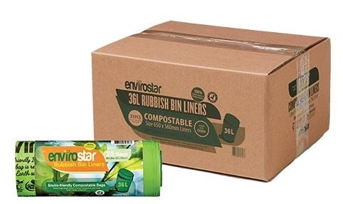 Envirostar Garbage Bag Compostable Green 36L 25/Roll 20/CTN