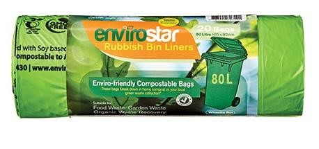 Envirostar Compostable Bin Liner – 80L capacity, designed for large waste bins.