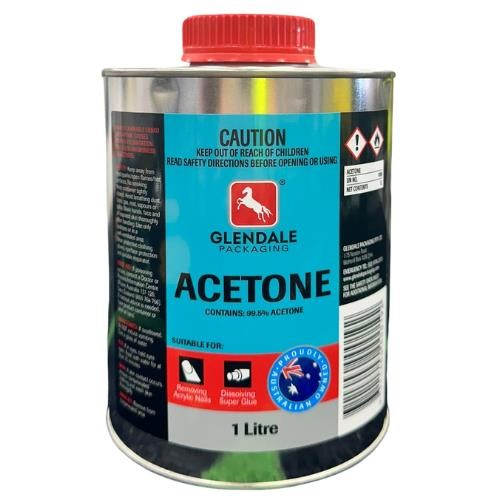 Glendale Acetone is an effective clean-up solvent for difficult resins, waxes and adhesives. Widely miscible, able to be mixed to form a solution.