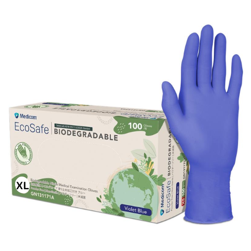 . Made of non-oxidizing biodegradable nitrile, which reduces the production of small plastic particles (micro-plastics) that may remain in the environment after decomposition. Tested according to ASTM D5511 standards and have achieved over 80% biodegradation within 490 days and the test condition. Size: X-Large. Colour: Violet Blue. Quantity: 100