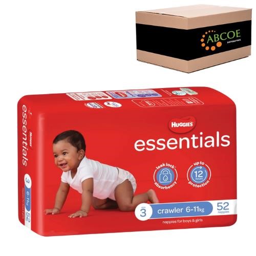 Huggies Essentials Nappies Crawler 52/PK 6-11kg 4/CTN Size 3