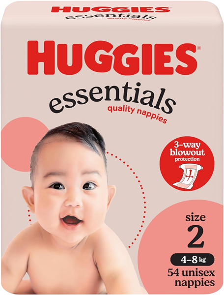 Huggies Essentials Nappies Infant 54/PK 4-8kg 4/CTN Size 2