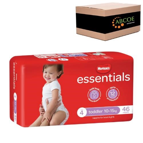 Huggies Essentials Nappies Toddler 46/PK 10-15kg 4/CTN Size 4