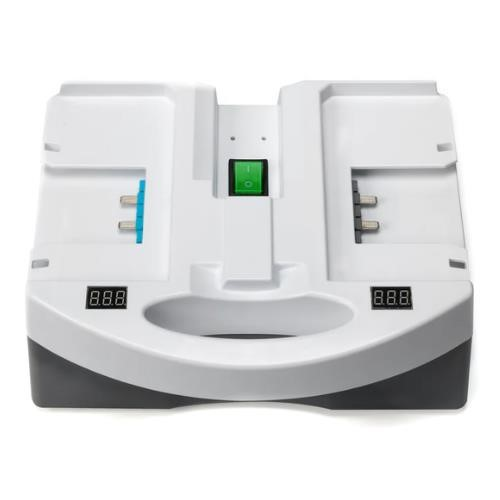 is a dual-channel fast charger designed to recharge i-power cleaning machine batteries rapidly and efficiently.