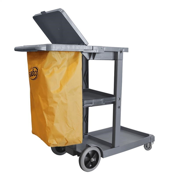• The Sabco SABC-2017L Professional Janitor Cart with Lid is a multi-purpose cleaners’ cart equipped with a covered waste/linen bag, durable frame and utility platform for tools or buckets