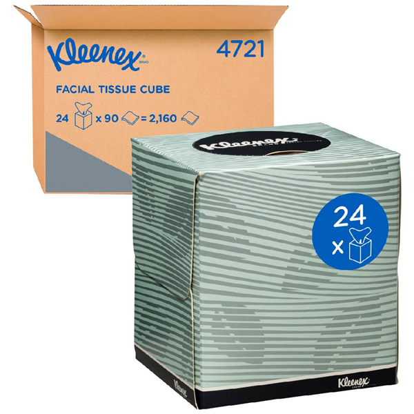 deliver the trusted softness and strength of Kleenex in a convenient bulk pack. Each carton contains 24 boxes, each with 90 premium 2-ply tissues that are gentle on the skin yet strong and absorbent. The last 10 tissues in every box are tinted blue, giving a clear signal that it’s nearly time for replacement. FSC certified, these tissues support sustainable practices, making them an environmentally responsible choice for both home and workplace use
