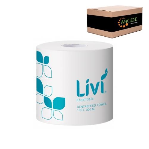 Livi Hand Towel Essentials Centrefeed Roll 1PLY 300M 4/ CTN 1203