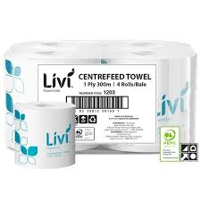 PRODUCT DESCRIPTION. Livi Hand Towel Essentials Centrefeed Roll is a high-capacity, environmentally certified solution designed for busy washrooms and high-traffic environments. Each 300m roll delivers strong and highly absorbent 1 Ply towels that dry hands quickly and effectively while also being versatile enough for wiping up light spills. PEFC certified, these towels ensure responsible sourcing and sustainable purchasing, making them an eco-friendly choice without compromising on performance. With a width of 190mm and a generous 300m length, each roll provides lasting efficiency and reduces the frequency of refills, perfect for commercial kitchens, healthcare facilities, and everyday use