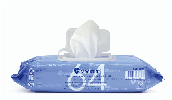 • The Medicom Pre-Moistened Washcloths are generous-sized, soft non-woven wipes, pre-moistened for immediate use and designed to cleanse, soothe and protect delicate skin.