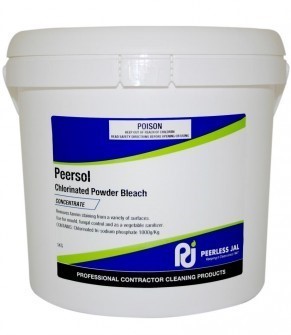 Peerless Peersol Chlorinated Powder Bleach 5kg is a concentrated chlorine-based powder formulated for powerful de-staining, sanitising, and whitening across a wide range of surfaces