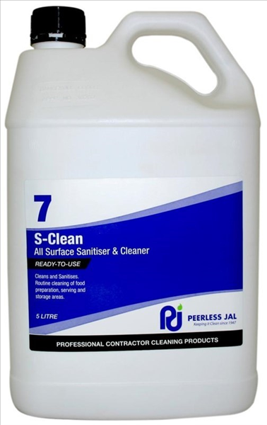 S-Clean Surface Sanitiser & Cleaner #7 is a ready-to-use formulation designed to clean and sanitise food preparation, storage and eating areas