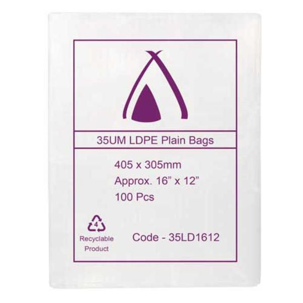 Poly Bag 16x12" 405x305mm 35UM 100 Pack