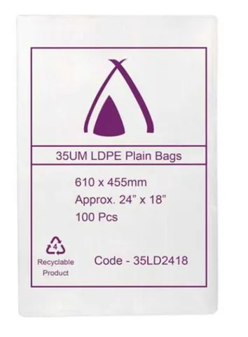 • The Poly Bag 24x18" (610x455mm) 35µm is a heavy-duty, clear plastic bag designed for packaging, storage, and protection of large or bulky items.