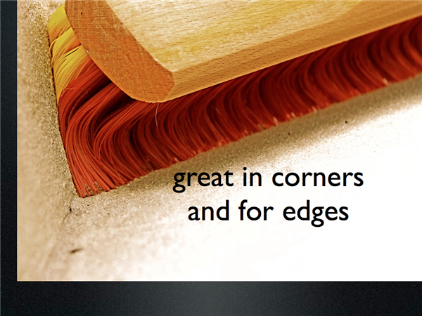 – suitable for light sweeping, especially edges and transitions.