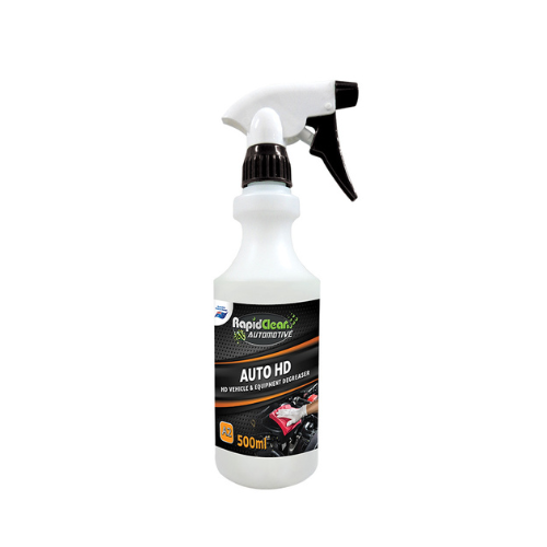 RapidClean Auto HD Spray Bottle is a ready-to-use degreaser and cleaner designed to tackle grease, oil, grime and road film on vehicles, machinery and hard surfaces — without the need for dilution or mixing