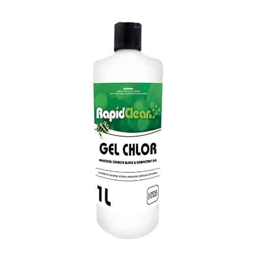 • RapidClean Gel Chlor is a chlorine-activated bleach and disinfectant in a thickened gel form with a fresh eucalyptus fragrance