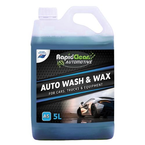 RapidClean Auto Wash & Wax is a concentrated, car-, truck- and equipment-wash detergent that cleans and applies a protective wax barrier in one step.