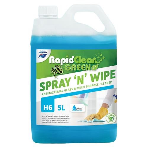 RapidClean Spray?n?Wipe 5L is a ready-to-use multipurpose cleaner designed for quick and effective removal of dirt, grease, fingerprints and everyday grime from hard surfaces.
